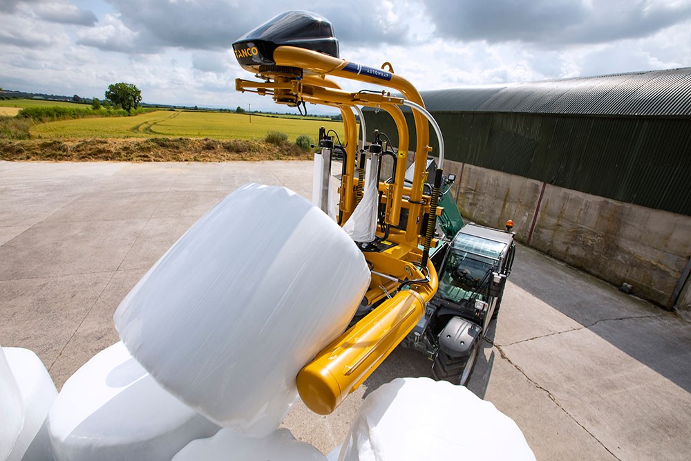 Der patentierte Mechanismus zum Folienschnitt und automatischen Neustart macht das manuelle Einfädeln der Folie zwischen den Ballen überflüssig — und spart bei jedem einzelnen Wickelzyklus Zeit.